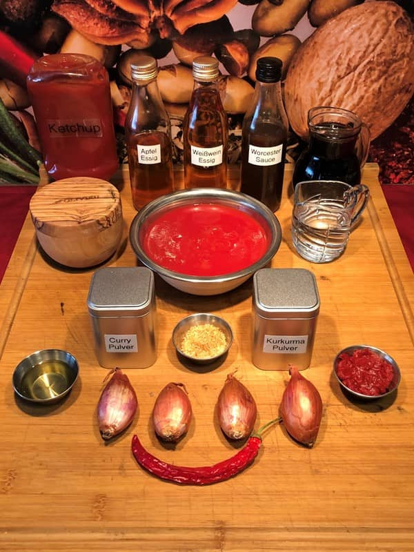 Inspiriert von Schilling's Imbiss. "Currysauce" ist eine würzige und aromatische Sauce, die aus einer Mischung von Currypulver, Kokosmilch, Zwiebeln und Gewürzen besteht. Sie ist vielseitig einsetzbar und verleiht Gerichten wie Hähnchen, Gemüse oder Reis eine exotische, pikante Note.