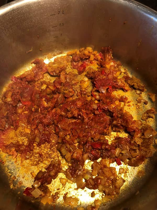 - Restliche Zutaten dazu geben und aufkochen lassen