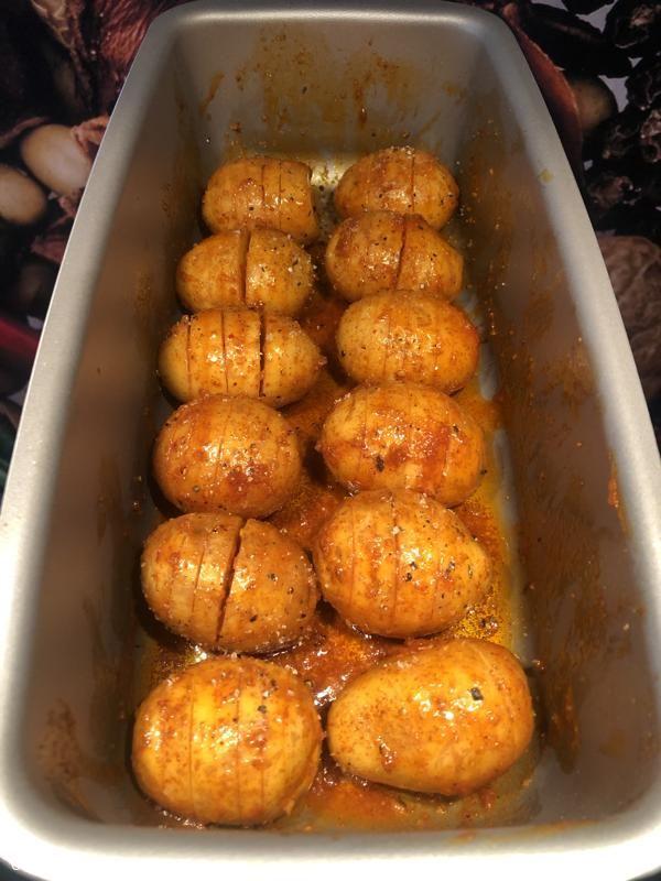 - Kartoffel in der Form mit der halben Buttermischung einpinseln