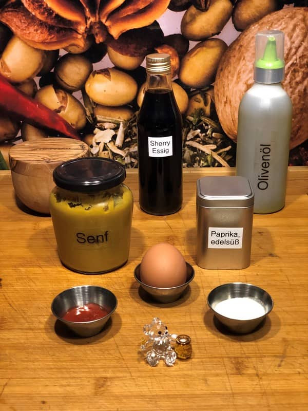Meine Variation des Klassikers. "Hausdressing" ist eine individuelle Mischung aus Öl, Essig, Gewürzen und Kräutern, die in Restaurants oder zu Hause zubereitet wird. Es variiert je nach Vorlieben und kann als Salatdressing oder Marinade für verschiedene Gerichte verwendet werden, um ihnen Geschmack und Aroma zu verleihen.