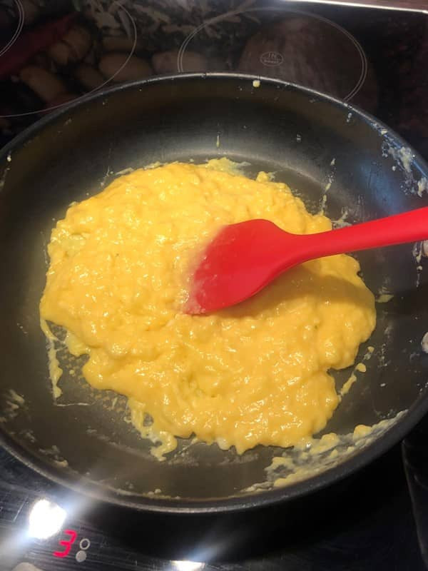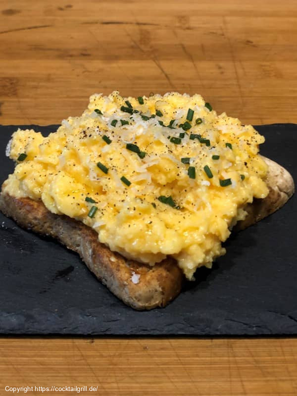 Inspiriert von Chef Jean Pierre. "Oeufs brouillés" sind klassische französische Rühreier, die bei niedriger Hitze langsam und schonend gegart werden. Sie haben eine weiche, cremige Konsistenz und werden oft mit Butter verfeinert für ein reichhaltiges, zartes Frühstück.