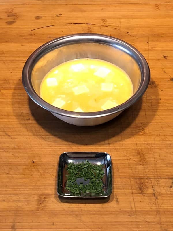 - Drei Volleier und ein Eigelb in einer Schüssel verquirlen