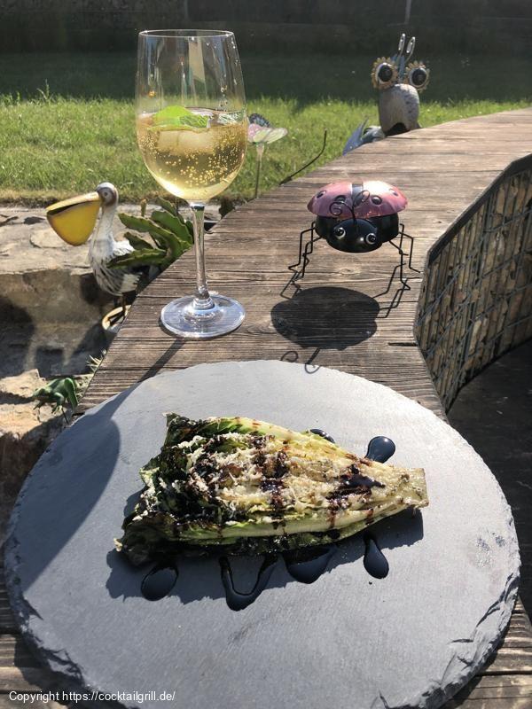 Gegrillter Salat als wunderbare Vorspeise. "Romanasalat" ist eine erfrischende Variante. Die Salatköpfe werden leicht gegrillt, um eine rauchige Note hinzuzufügen. Mit einem Dressing aus Olivenöl, Zitrone und Kräutern beträufelt, ergibt sich ein einzigartiger Geschmack und eine interessante Textur für Salatliebhaber.