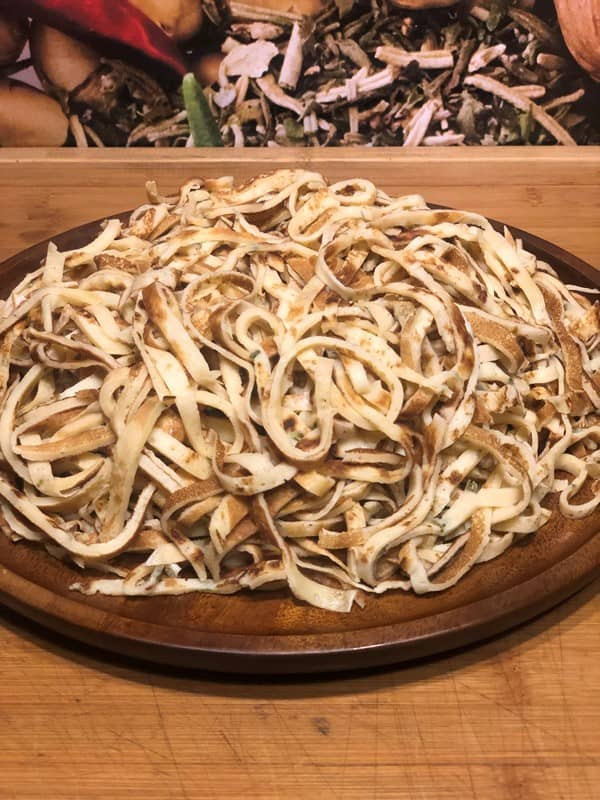 - In dünne Scheiben in eine Schüssel schneiden