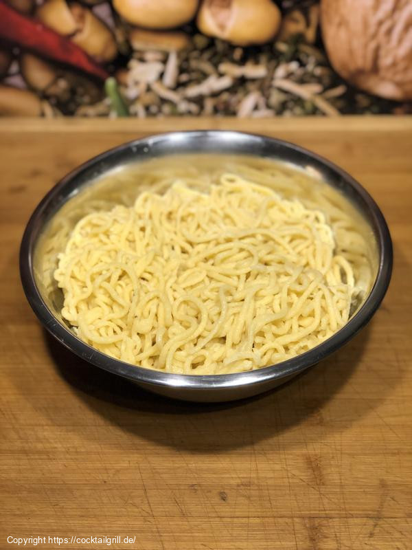 Mit selbgemachter Mayonnaise alla Oma. "Kartoffelsalat" ist eine klassische Beilage, bei der gekochte Kartoffeln mit selbstgemachter Mayonnaise aus u. a. Essig, Öl und Senf gemischt werden. Die cremige Mayonnaise verleiht dem Salat eine reiche Textur und einen würzigen Geschmack. Dieser Salat ist ein beliebter Begleiter für Grillfeste und Picknicks.