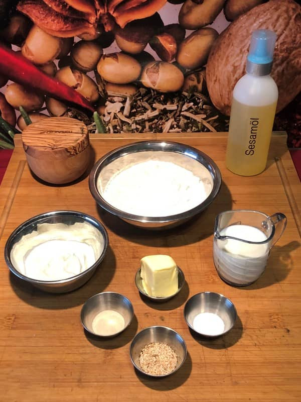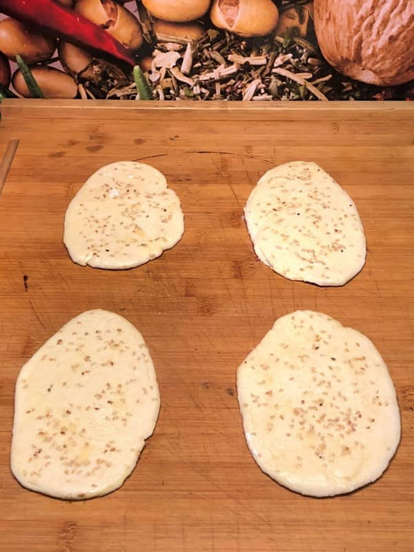 - Fladen ausrollen und Sesamkörner darüber streuen