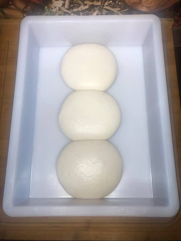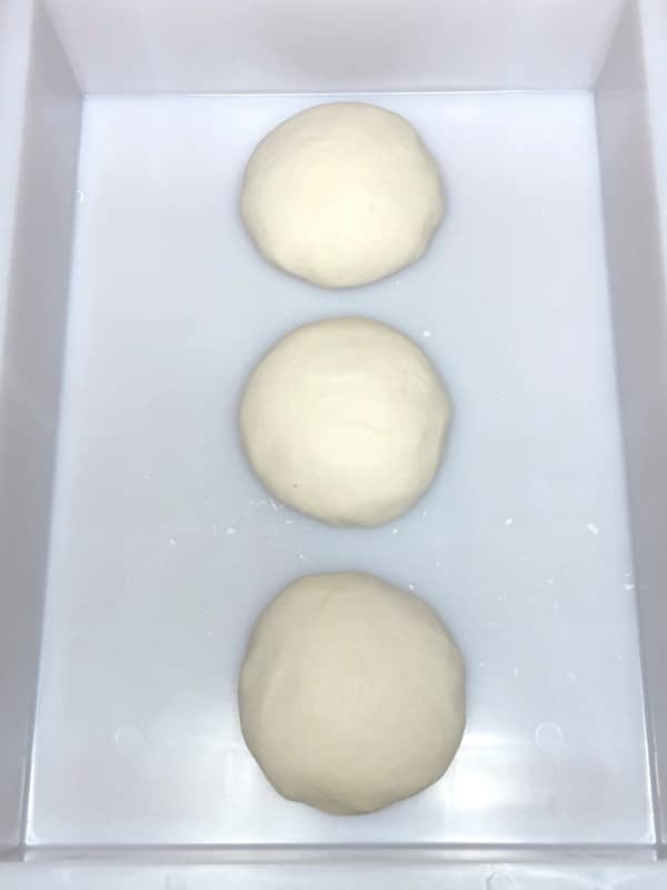 - Pizzateig mit dem Teigschaber in 6 Stücke abstechen