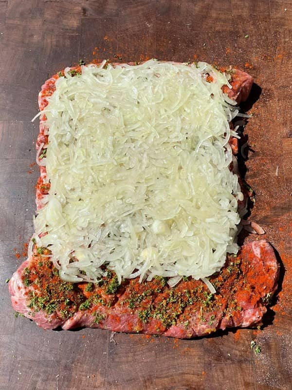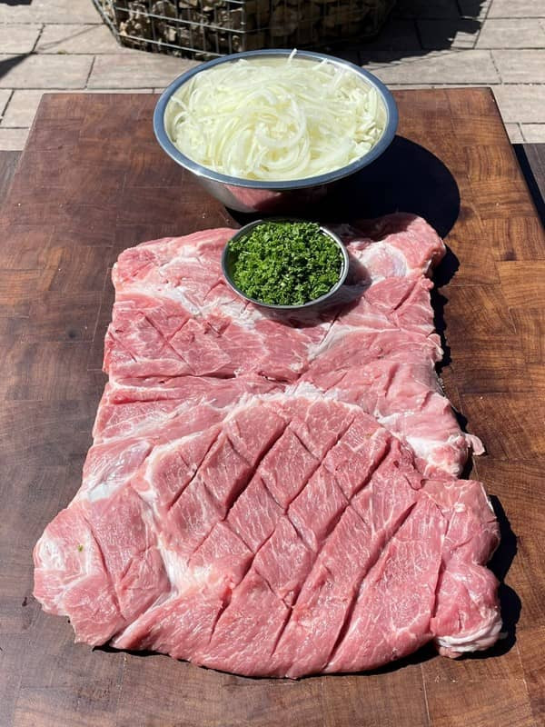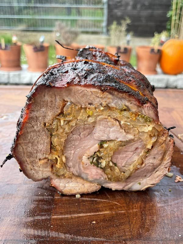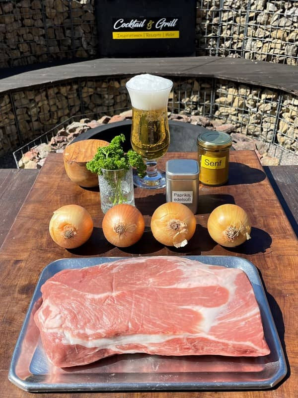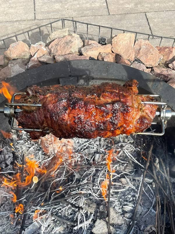 Ein muß auf jedem Drehspieß. Spießbraten ist ein herzhaftes Fleischgericht, bei dem gewürztes Schweine- oder Rindfleisch auf einem Spieß langsam über offenem Feuer oder im Grill gegart wird. Durch das langsame Drehen wird das Fleisch besonders saftig und aromatisch. Traditionell wird es mit Zwiebeln, Kräutern und Gewürzen verfeinert.