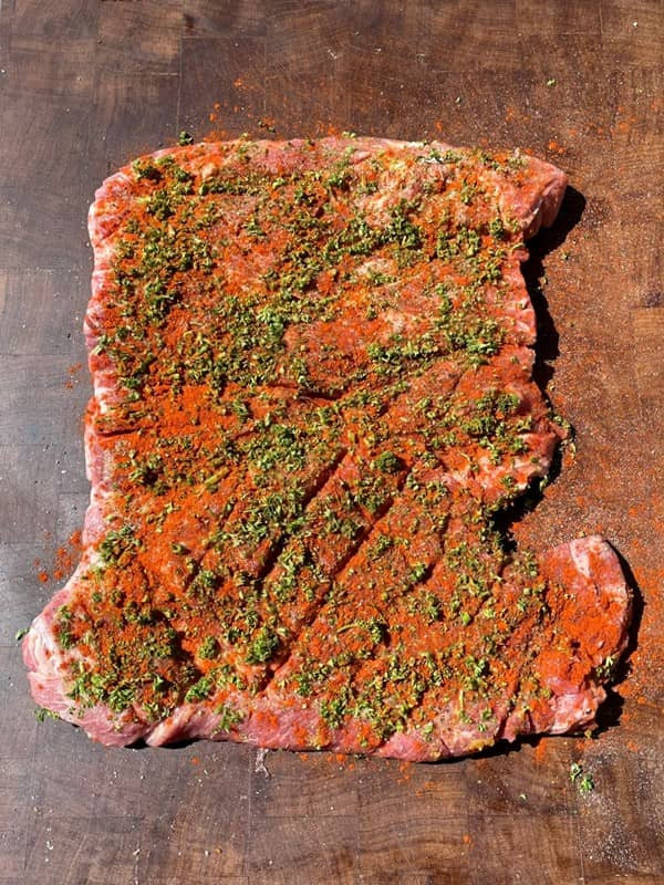 - Mit der Hälfte des Paprikapulver und Salz/Pfeffer würzen