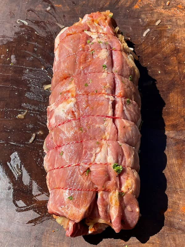- Spieß auf einem Brett abziehen und das Garn entfernen