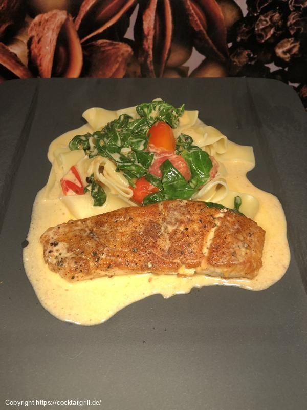 Einfach, praktisch, gut. "Lachs gebraten" ist ein köstliches Gericht, bei dem gebratene Lachsfilets auf einer Bettung aus Nudeln und Spinat serviert werden. Die cremige Spinatsauce verleiht dem Gericht eine reichhaltige Textur und der Lachs sorgt für eine zusätzliche Portion Protein und Geschmack.