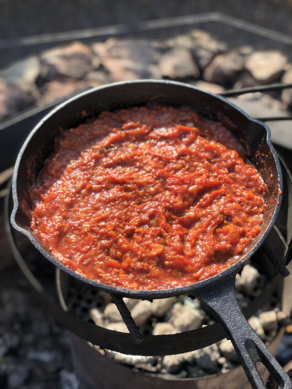- Ganze Tomaten, passierte Tomaten und Cocktailtomaten dazu geben