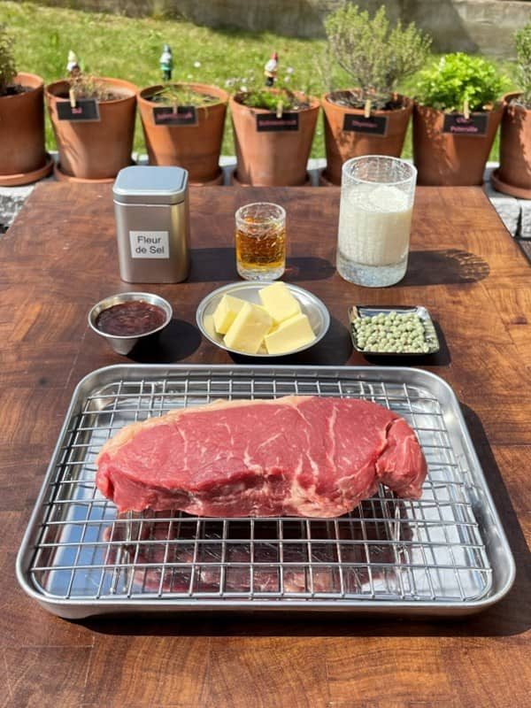 Inspiriert von Anthony Bourdain. "Steak au poivre" ist ein klassisches französisches Gericht aus kurzgebratenem Rindersteak, das mit grobem Pfeffer gewürzt und in einer cremigen Cognac-Pfeffersauce serviert wird. Es überzeugt durch seine würzige Kruste und die aromatische Sauce – perfekt für besondere Anlässe oder ein elegantes Dinner.