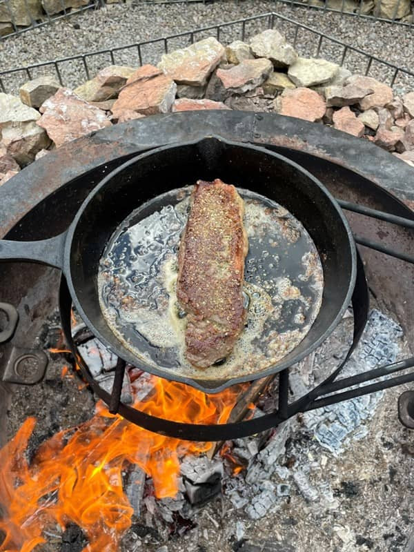 - Steak von beiden Seiten auf mittlerer Hitze anbraten