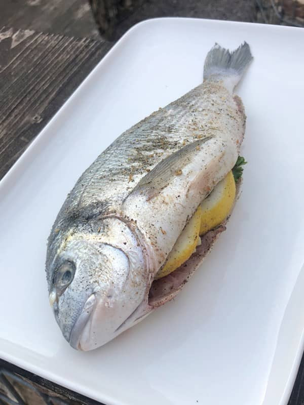 - Dorade mit Salz/Pfeffer und "Ahoi!" würzen