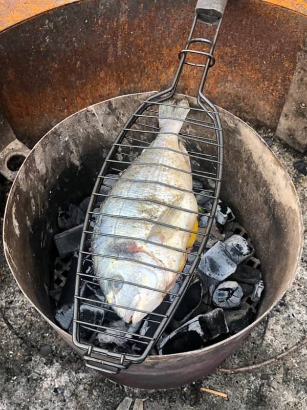 - Fischgitter auf dem Mangal platzieren