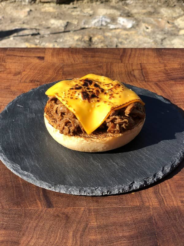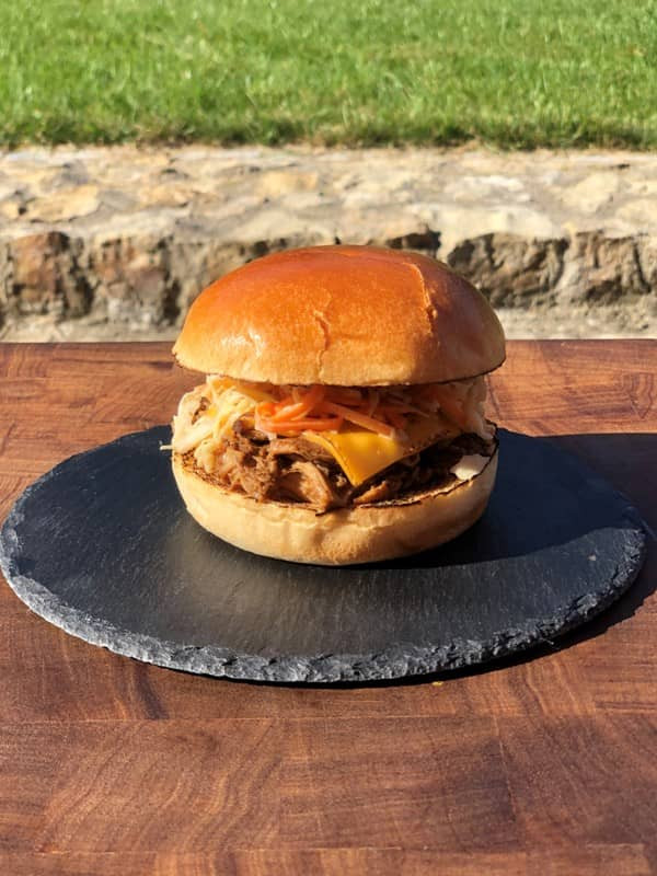 Eine einfaches und leckeres Standardgericht. Der "Pulled Pork-Burger" ist ein saftiger Genuss. Langsam gegartes Schweinefleisch, auseinandergezupft und mit Barbecue-Sauce verfeinert, wird auf einem Burgerbrötchen serviert. Begleitet von Krautsalat oder Coleslaw bietet dieser Burger herzhafte Aromen und zarte Fleischtextur.
