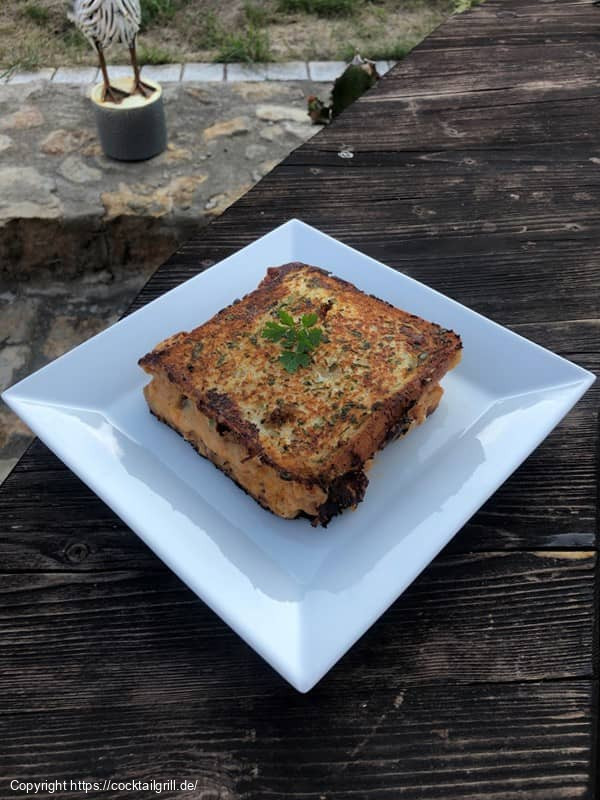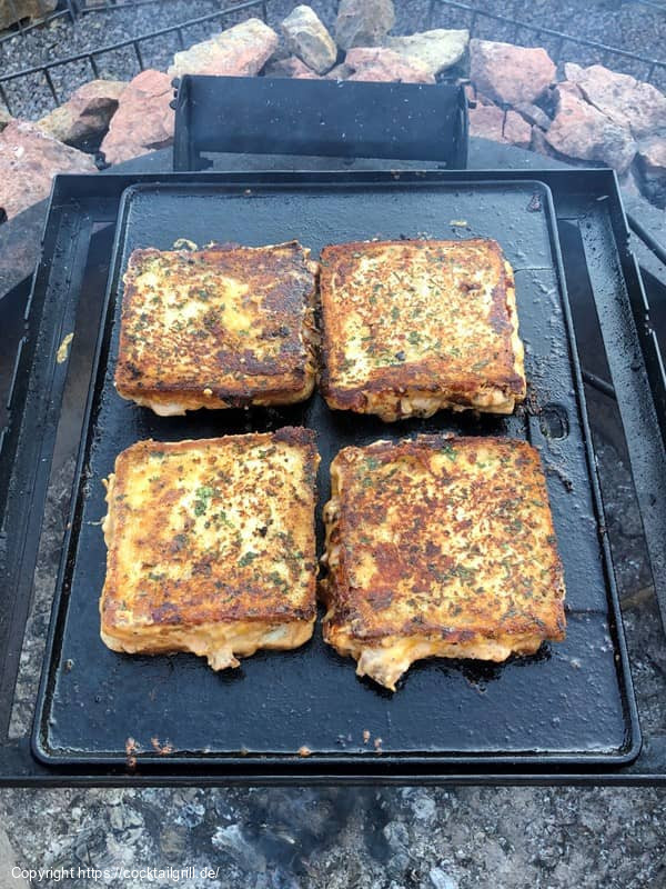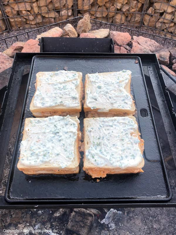 - Toasts auf die Griddle Plate legen und etwas flach drücken