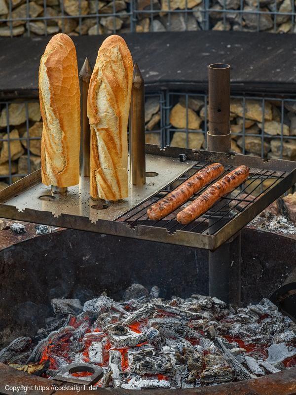 - Baguettehälften vorsichtig auf den Grillstab stecken
