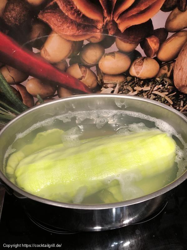 - Aus dem Wasser entnehmen, auspacken und abkühlen lassen