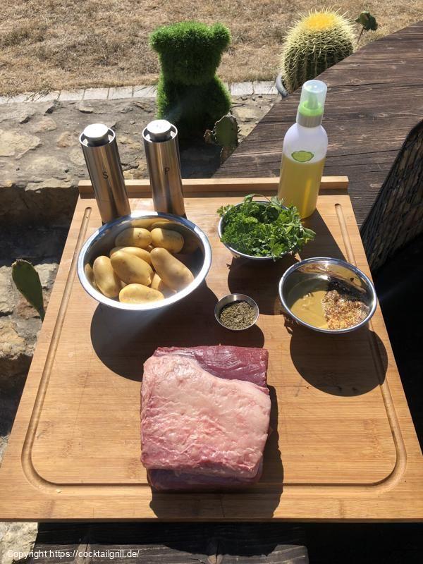 - Roastbeef mit Rost über die Kartoffeln stellen