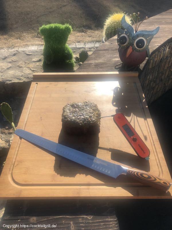 - Bei 55-56 Grad vom Grill nehmen und 10 min. ruhen lassen
