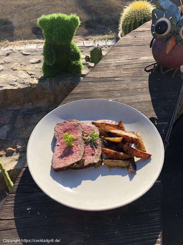 Inspiriert von BBQ aus Rheinhessen. "Roastbeef" ist ein saftiges Stück Rindfleisch, meist aus dem Rücken des Rinds. Gewürzt und im Ofen oder auf dem Grill gebraten, wird es oft in dünnen Scheiben serviert. Das Roastbeef ist bekannt für seine Zartheit und den kräftigen Geschmack.