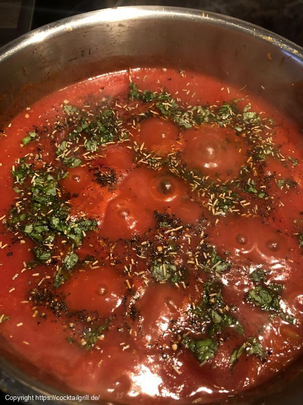 Eine Variation von zahlreichen Rezepten. "Tomatensauce" ist eine klassische Sauce aus reifen Tomaten, die meist mit Zwiebeln, Knoblauch und Gewürzen wie Basilikum und Oregano verfeinert wird. Sie passt hervorragend zu Pasta, Pizza und vielen anderen Gerichten und kann vielseitig variiert werden.
