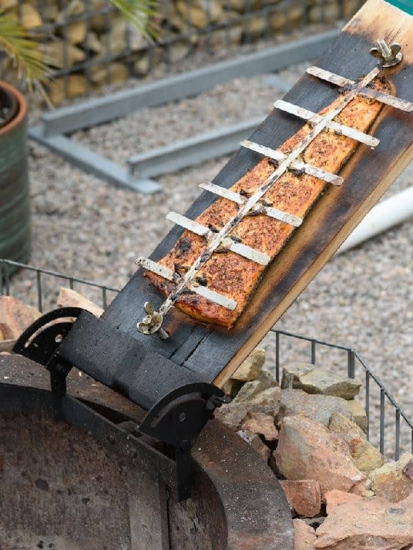Absolute Basic-Variante eines Flammlachs ohne Schnick-Schnack. Flammlachs ist ein traditionell finnisches Gericht, bei dem Lachsfilets auf einem Holzbrett befestigt und über offenem Feuer langsam gegart werden. Die Flammen und das Holz verleihen dem Fisch einen einzigartigen, rauchigen Geschmack. Ein beliebtes Highlight auf Weihnachtsmärkten und Grillfesten.