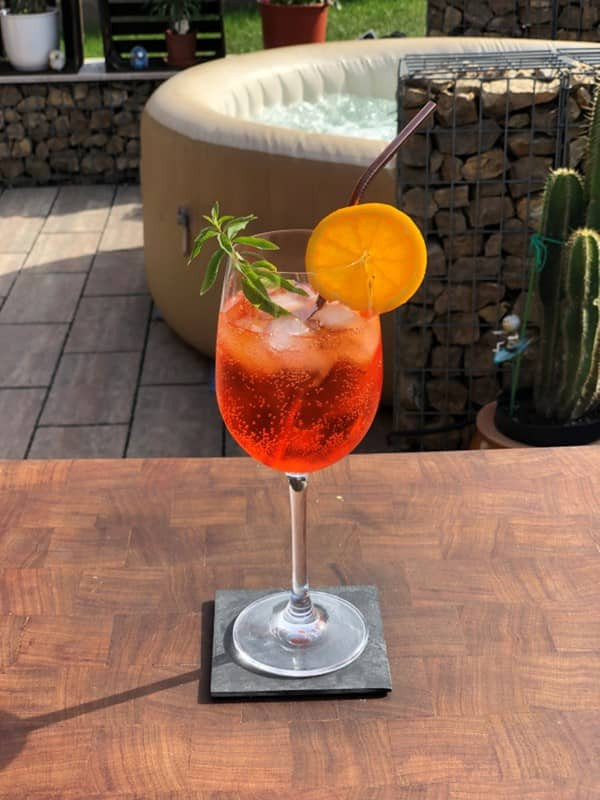 Der herbe Klassiker. "Aperol Spritz" ist ein erfrischender italienischer Aperitif. Mit Aperol, Prosecco und einem Spritzer Soda kombiniert, bietet er einen leichten, spritzigen Geschmack mit einer leicht bitteren Note. Ein beliebter Sommerdrink, oft mit Orangenscheiben und Eis garniert.