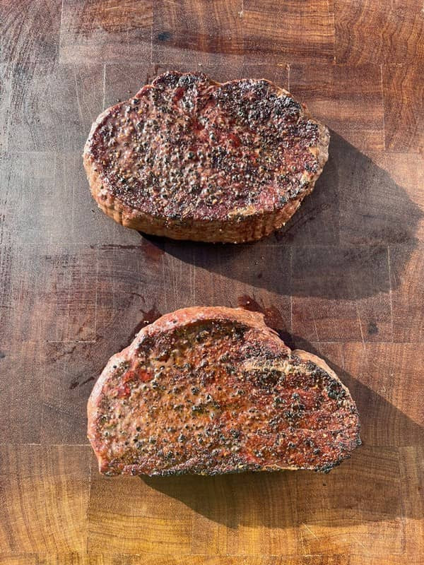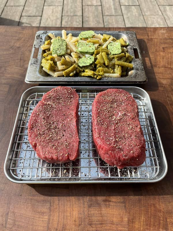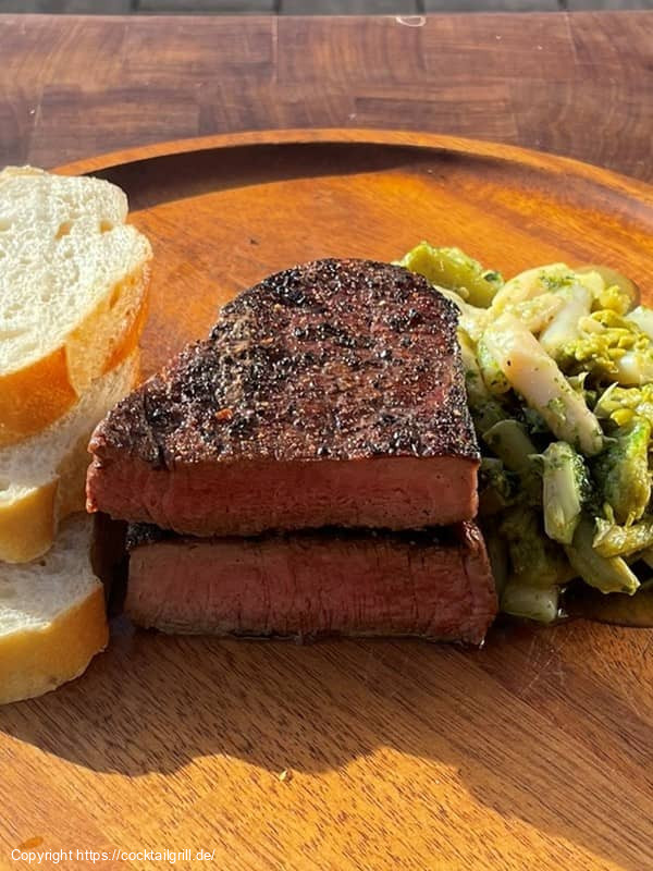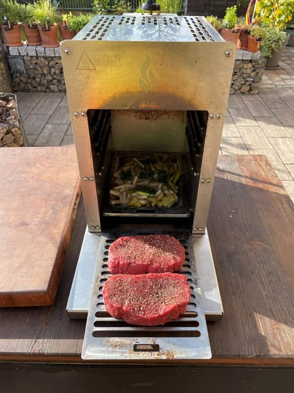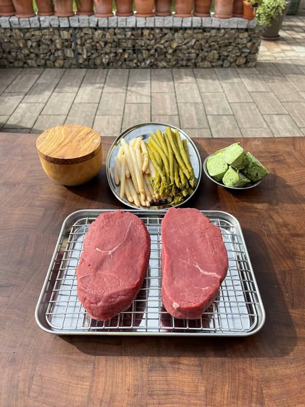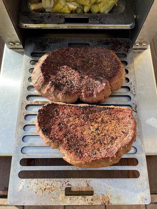 - Steaks auf beiden Seiten scharf angrillen, dann tiefer setzen
