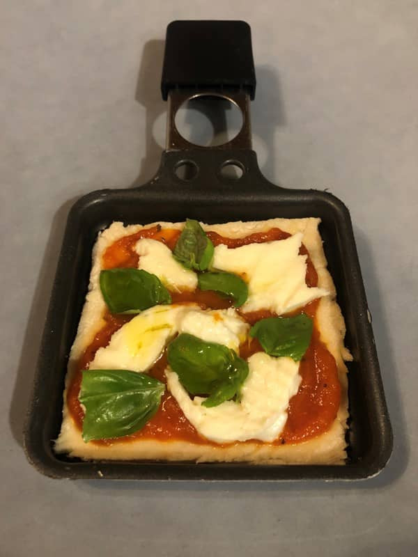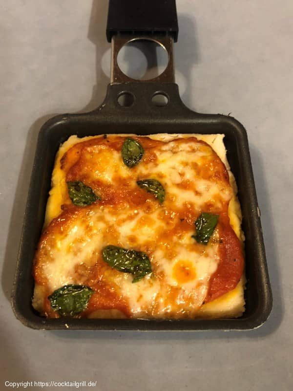Auch Pizza darf aus dem Raclette nicht fehlen. "Mini-Pizza Margherita" sind kleine, handliche Pizzen, die den klassischen Geschmack der italienischen Küche bieten. Mit fruchtiger Tomatensauce, geschmolzenem Mozzarella und frischem Basilikum belegt, sind sie ein perfekter Snack oder eine Vorspeise, die Tradition und Genuss vereint.