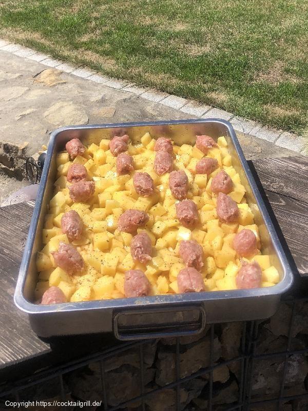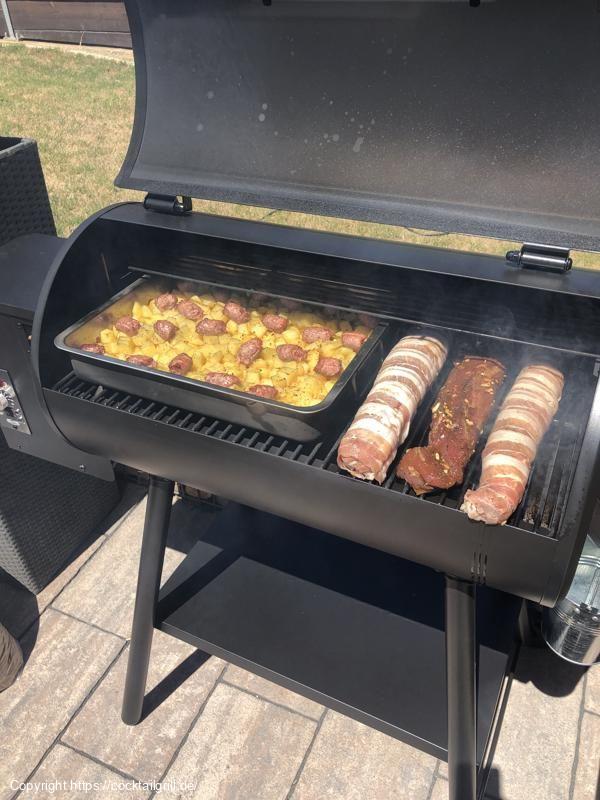 Falls noch Platz im Smoker ist bietet sich diese Beilage an. "Bratwurstkartoffeln" aus dem Smoker sind würzige, rauchige Beilagen, die durch langsames Garen aromatisch verfeinert werden. Mit Gewürzen und Öl mariniert, erhalten sie eine knusprige Kruste und ein zartes Inneres – perfekt zu Fleischgerichten oder als eigenständiger Snack.