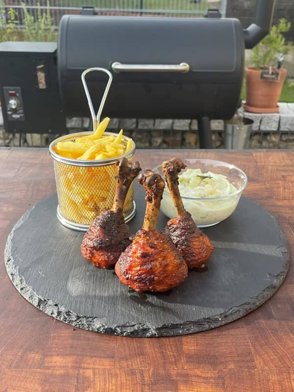 - Unterschenkel entnehmen und in die BBQ-Sauce tauchen