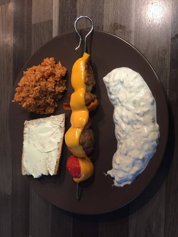 - Spieß auf den Teller platzieren