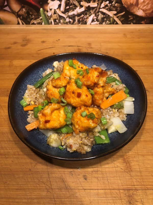 Inspiriert von Bernd Zehner. "Chicken Rice" ist ein leckeres Gericht, bei dem knusprig fritiertes Hähnchen in einer leckeren Sauce glasiert wird und auf schmackhaftem Eierreis serviert wird. Die knusprige Textur des Hähnchens harmoniert perfekt mit dem aromatischen, leicht gebratenen Eierreis.