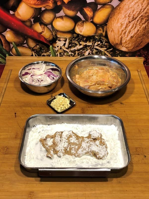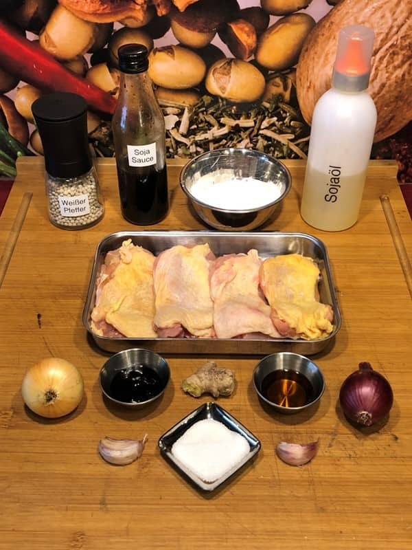 - Hähnchen darin ca. 10 Minuten marinieren