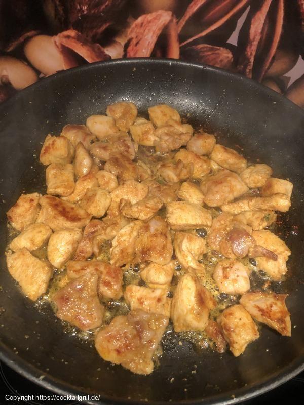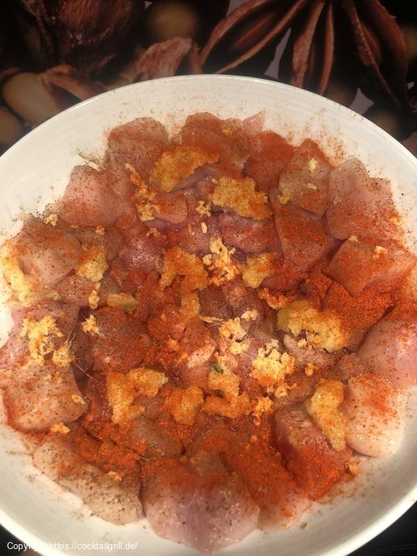 - Hähnchen darin marinieren und für ca. 2 Stunden abgedeckt in den Kühlschrank stellen