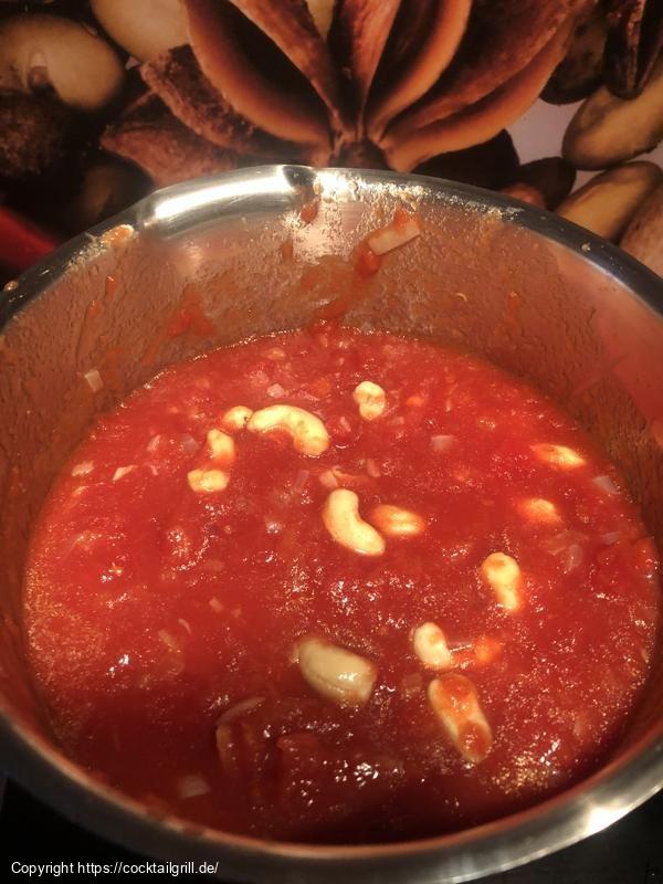 - Garam Masala, Chili- und Kurkurmapulver ganz kurz mitrösten