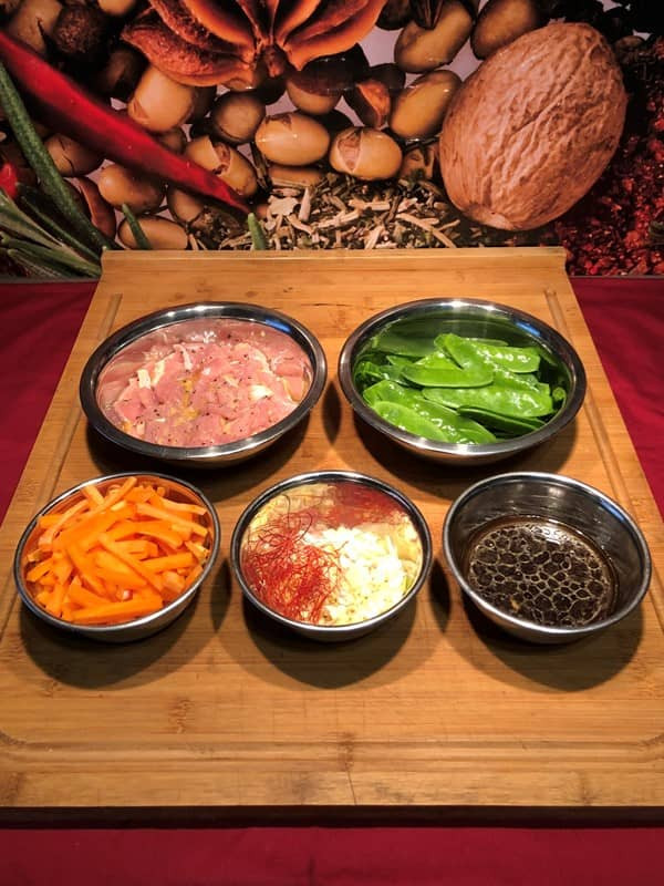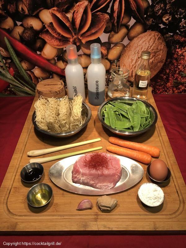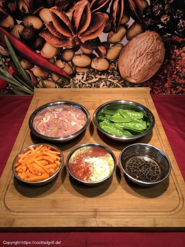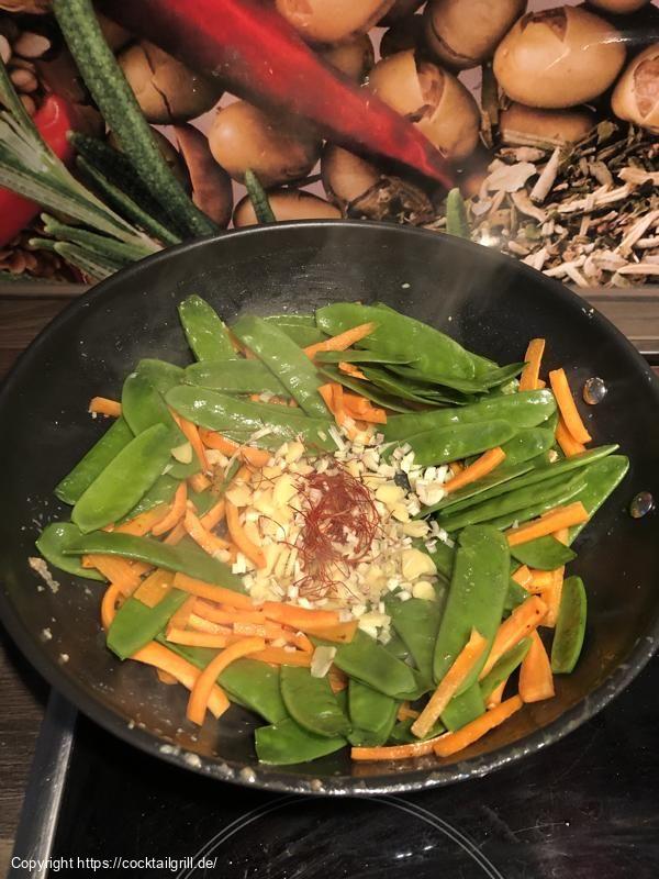 - Knoblauch, Ingwer und Chilifäden dazu geben