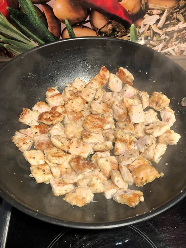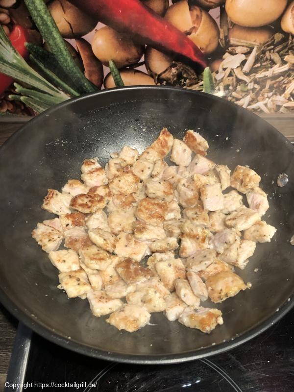 - Fleisch in mundgerechte Stücke schneiden und in eine Schüssel geben