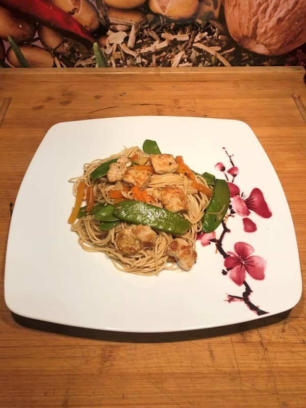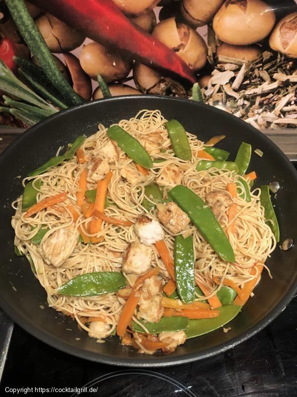 Ein asiastisches Gericht mit Schweinefleisch. "Pork Noodles" ist ein asiatisches Gericht aus gebratenen Nudeln, zartem Schweinefleisch und frischem Gemüse, verfeinert mit einer herzhaften Sauce. Es bietet eine perfekte Kombination aus würzigen Aromen, zartem Fleisch und knackigen Zutaten – ein echter Klassiker der asiatischen Küche.