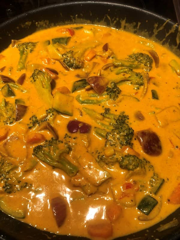 - Currypaste dazu geben und kurz mitbraten