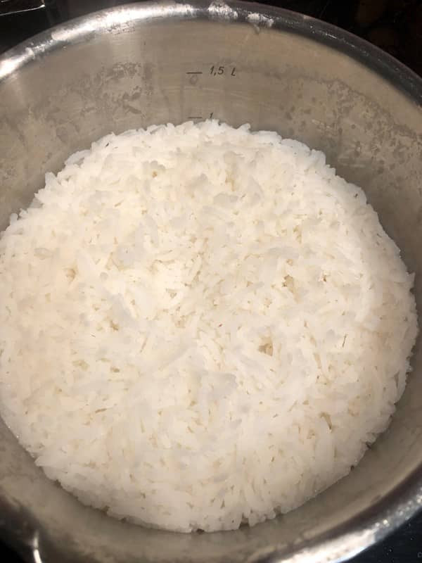 - Reis auf den Teller geben