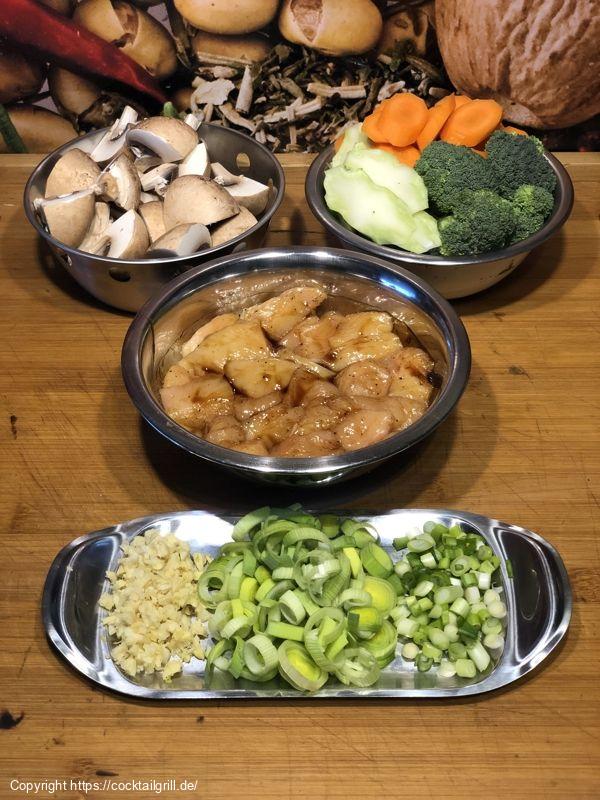 - Hühnerbrust mundgerechte Stücke schneiden