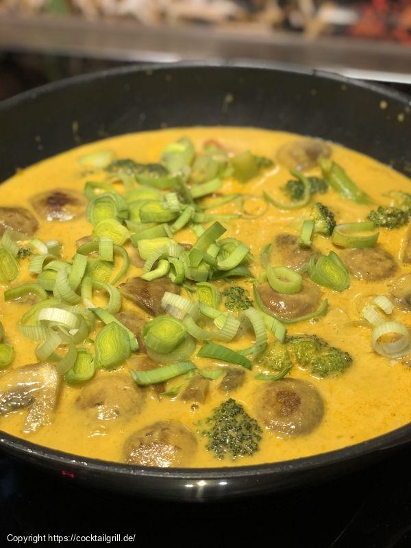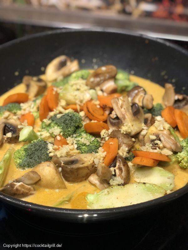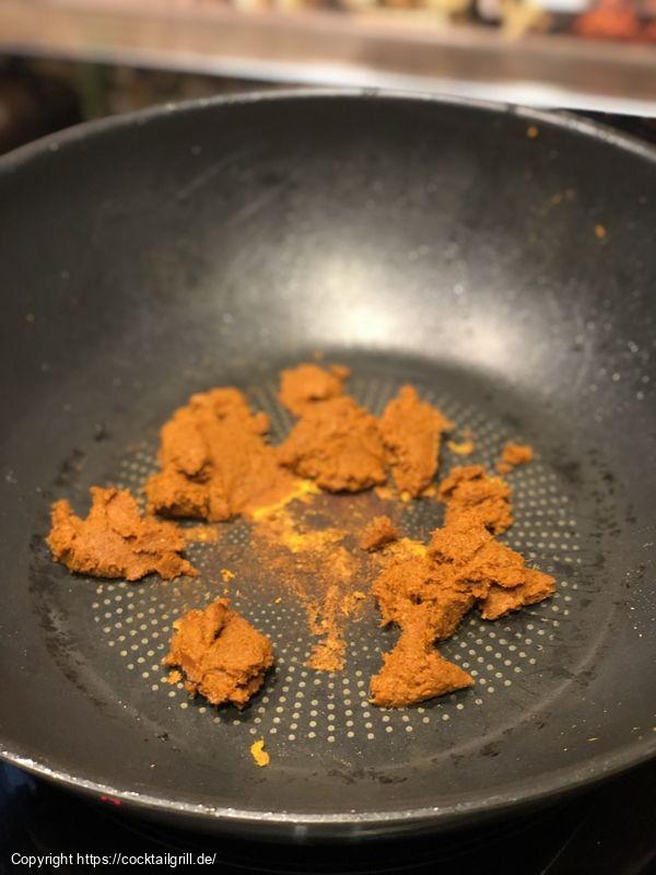 - Mit Kokosmilch ablöschen und aufkochen lassen