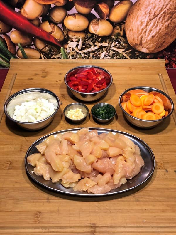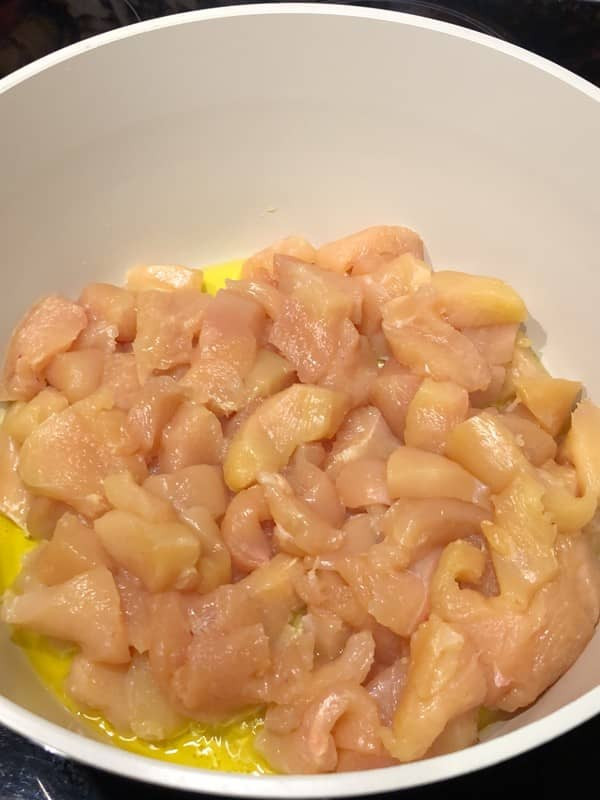 - Hähnchenbrust in mittelgroße Stücke schneiden