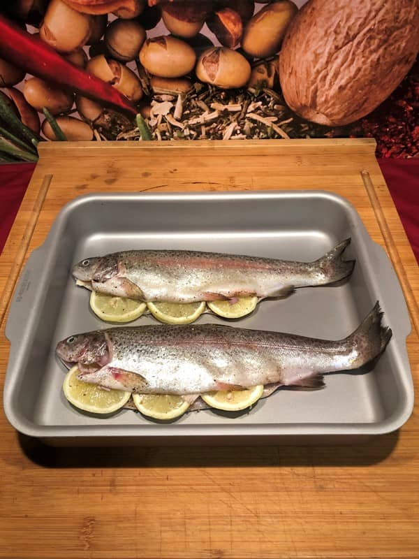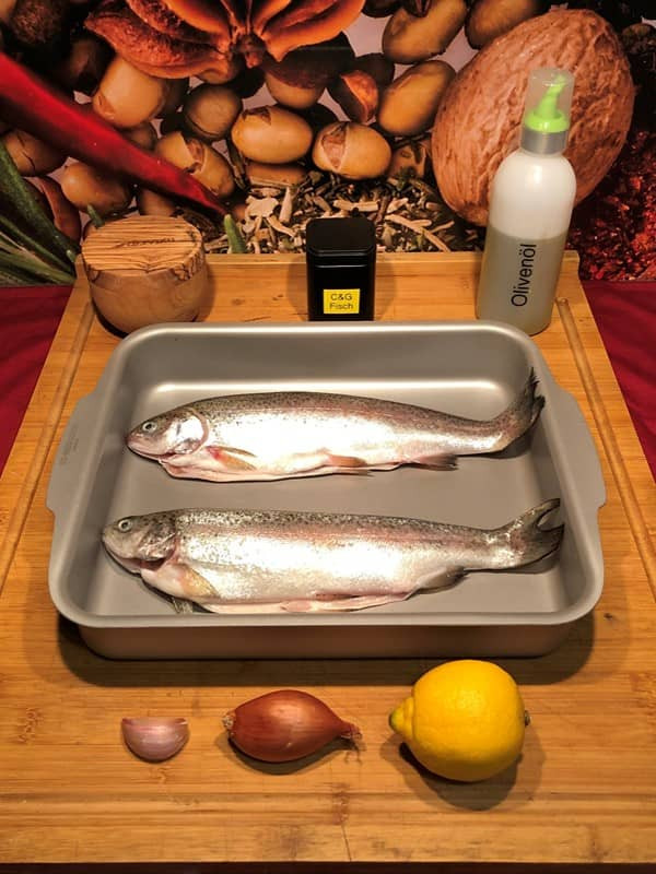 - Forelle innen und außen mit Olivenöl einpinseln