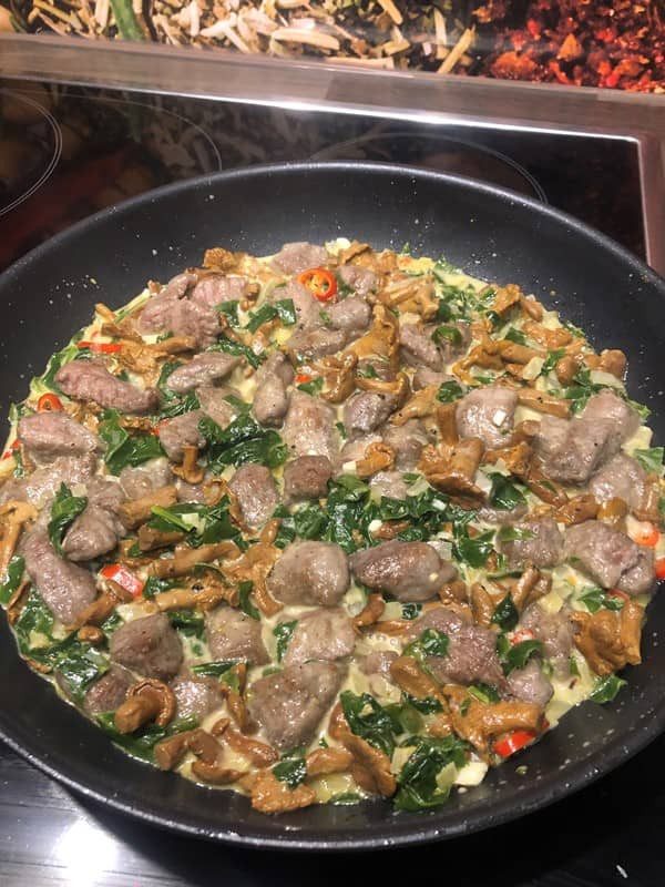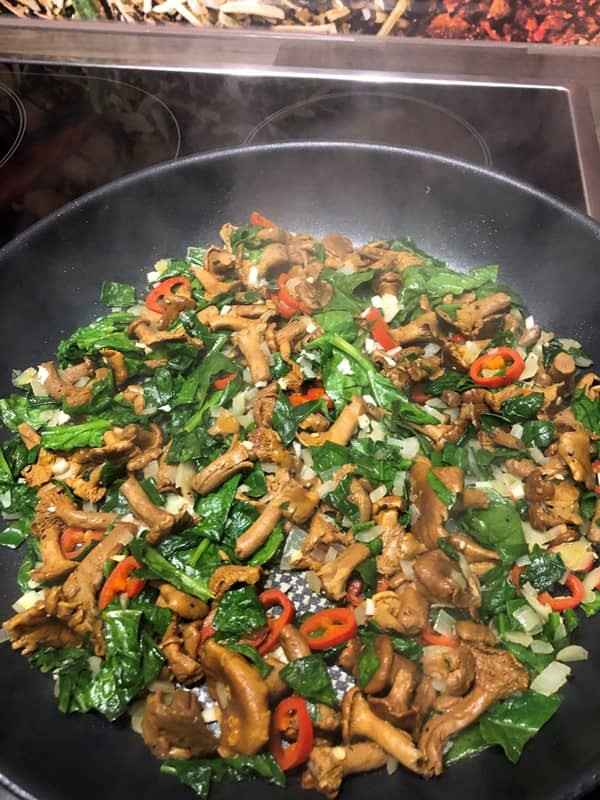 - Zwiebel anschwitzen und Pfifferlinge dazu geben