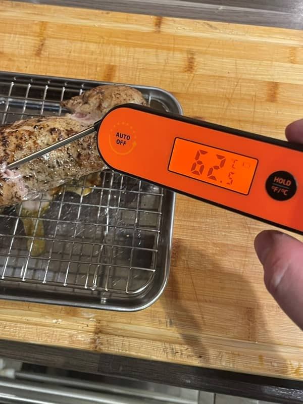 - Fleisch entnehmen und 5 Minuten ruhen lassen